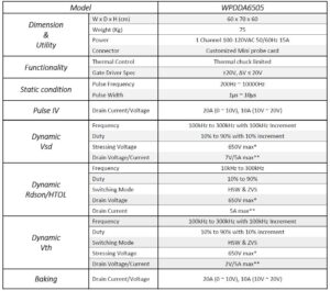 Wafer Probing Device Dynamics Analyzer 6505 (WPDDA6505) is designed to provide the most general dynamic characterization on power GaN wafer directly. It’s intended to target foundry and design house during the research & development and mass production phase.